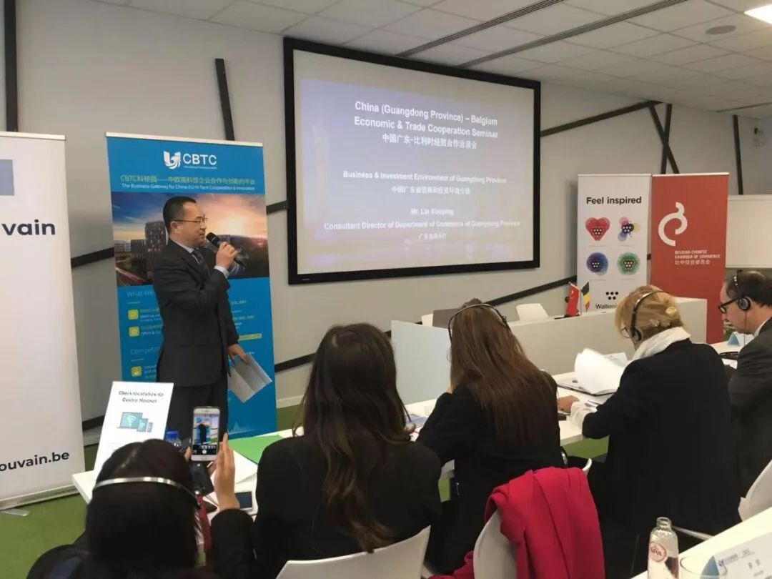 比利时经贸合作洽谈会。会上,比中经贸委员会主席德威特及中比科技园总裁对广东服务贸易经贸交流团表示了热烈的欢迎并致辞。广东省商务厅林小平调研员、广州市商务局魏敏副局长、河源市商务局何勇强副局长先后向参会代表播放了本地区宣传短片,并分别介绍了本地区的营商环境、服务贸易产业发展情况和投资政策。