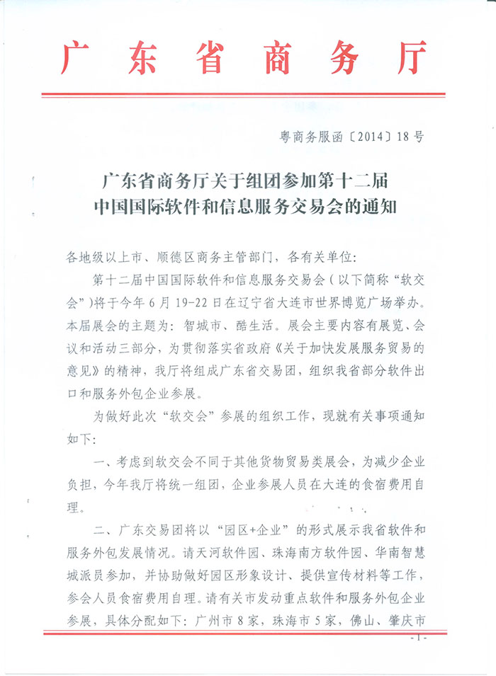 2.广东省商务厅关于组团参加第十二届中国国际软件和信息服务交易会的通知